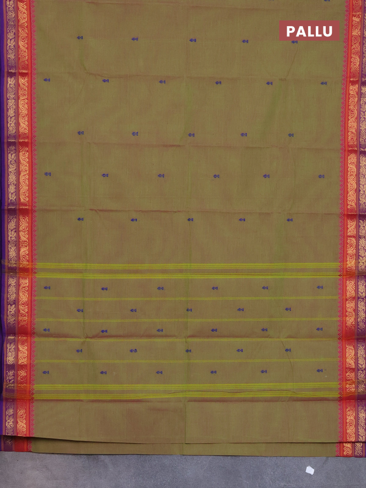 Chettinad cotton saree dual shade of green and blue with thread woven buttas and zari woven border