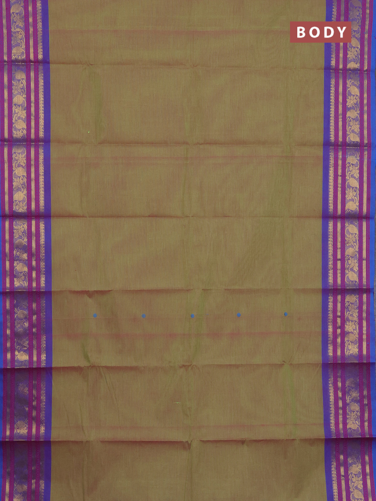 Chettinad cotton saree dual shade of green and dual shade of blue with thread woven buttas and temple disign zari woven border