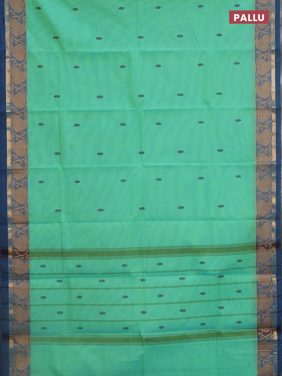 Chettinad cotton saree dual shade of light greenish blue and peacock blue with thread woven buttas and thread & zari woven border