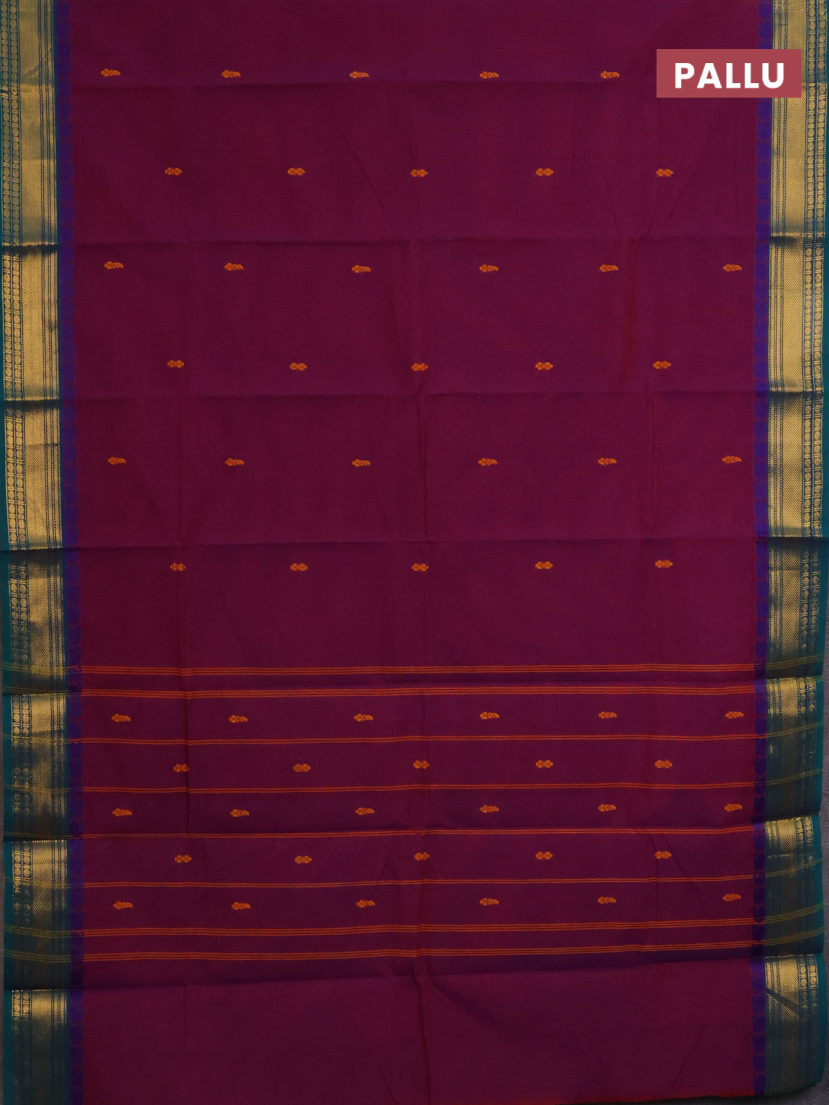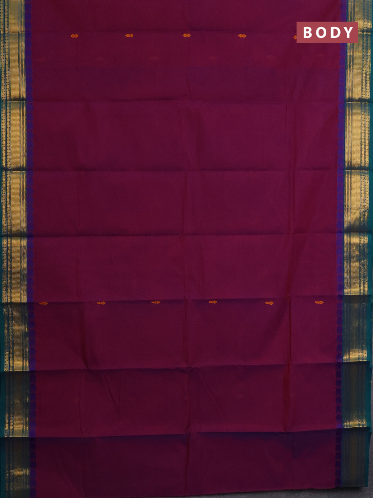 Chettinad cotton saree dual shade of maroon and peacock green with thread woven buttas and zari woven border