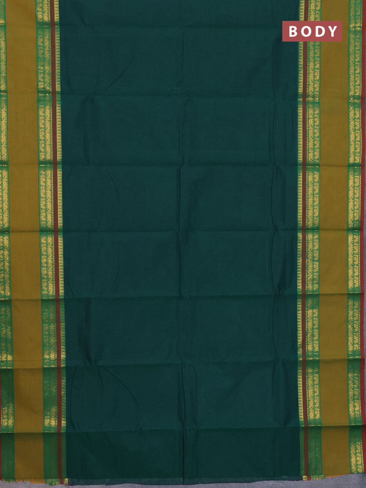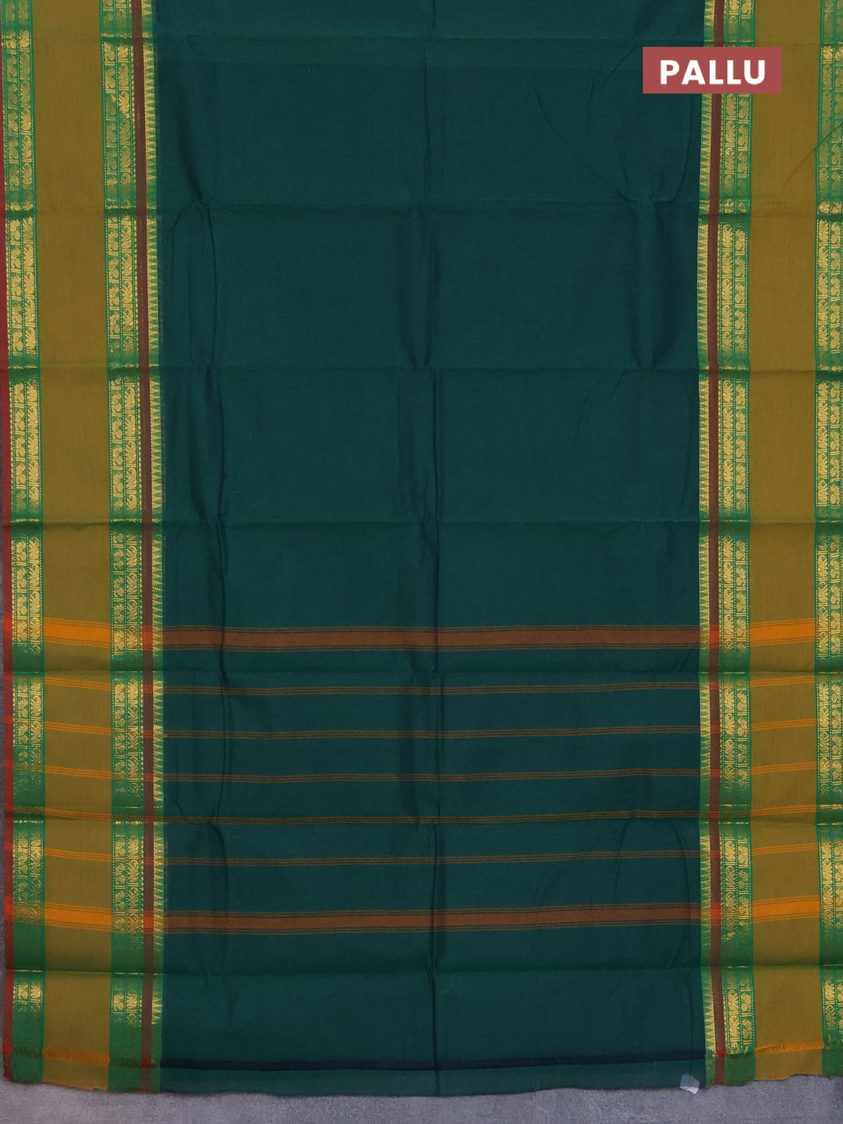 Chettinad cotton saree green and mustard with thread woven buttas and rattapet zari woven border