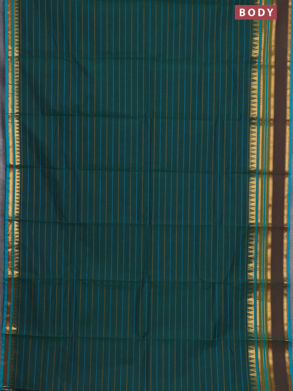 Chettinad cotton saree green and teal blue with allover thread woven stripes pattern and zari woven border