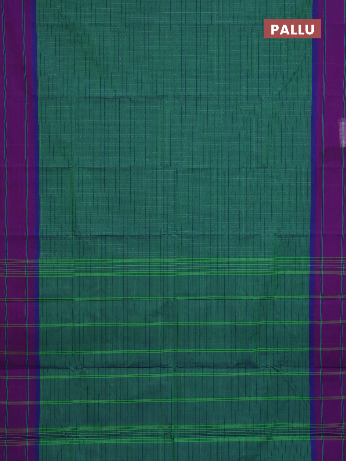 Chettinad cotton saree green and violet with allover checked pattern and simple border
