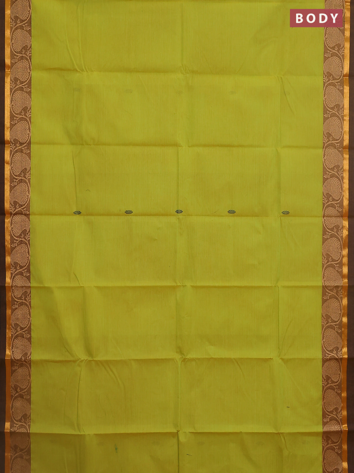 Chettinad cotton saree light green and brown with thread woven buttas and thread & zari woven border