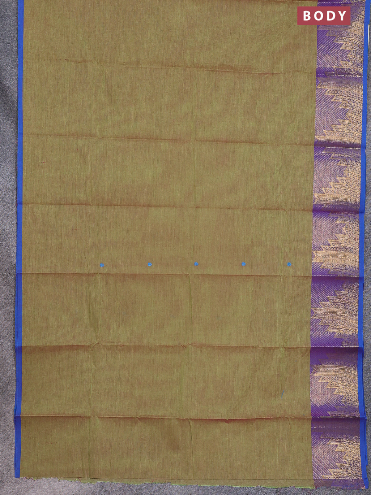 Chettinad cotton saree light green and cs blue with thread woven buttas and temple design zari border