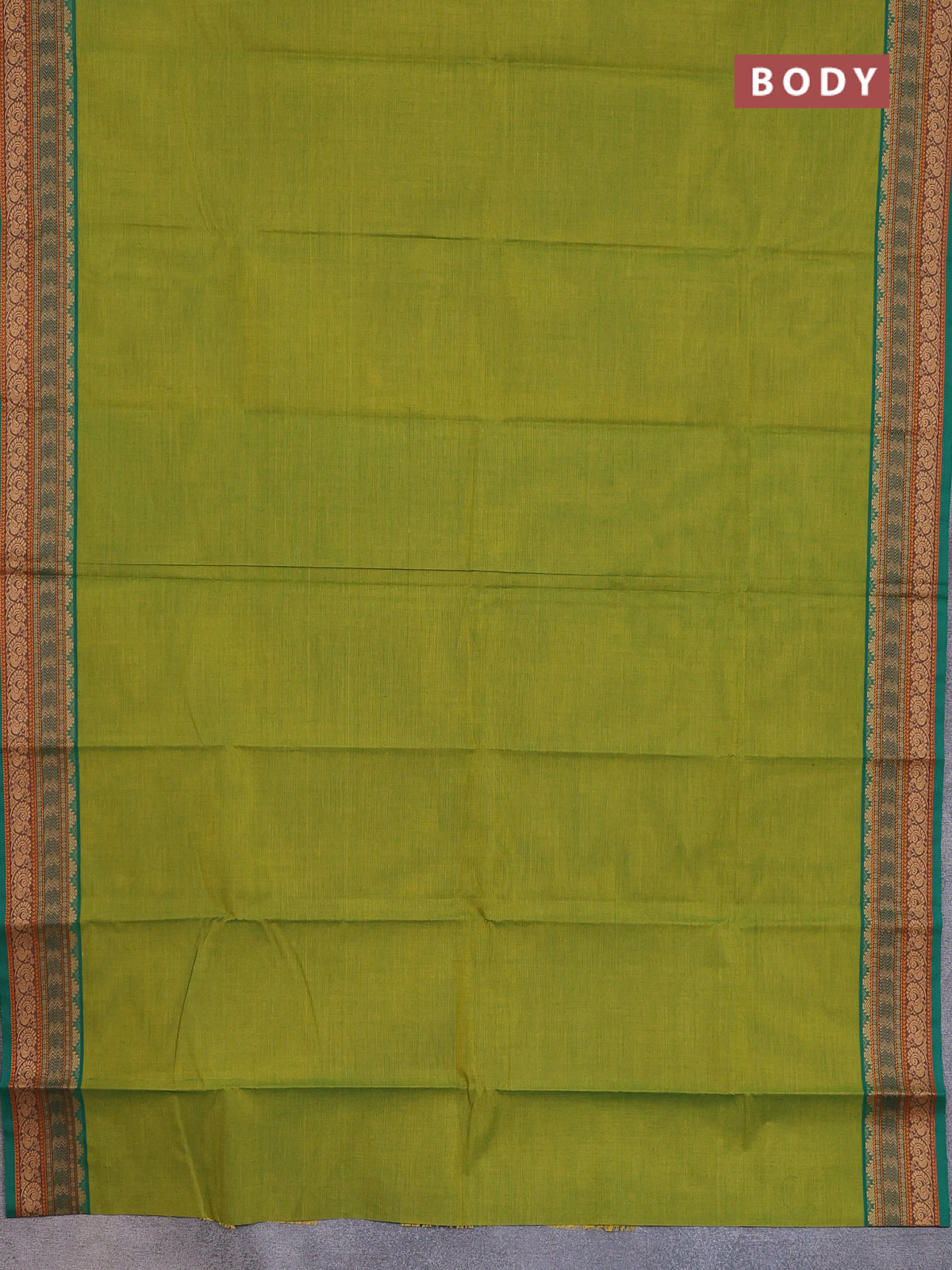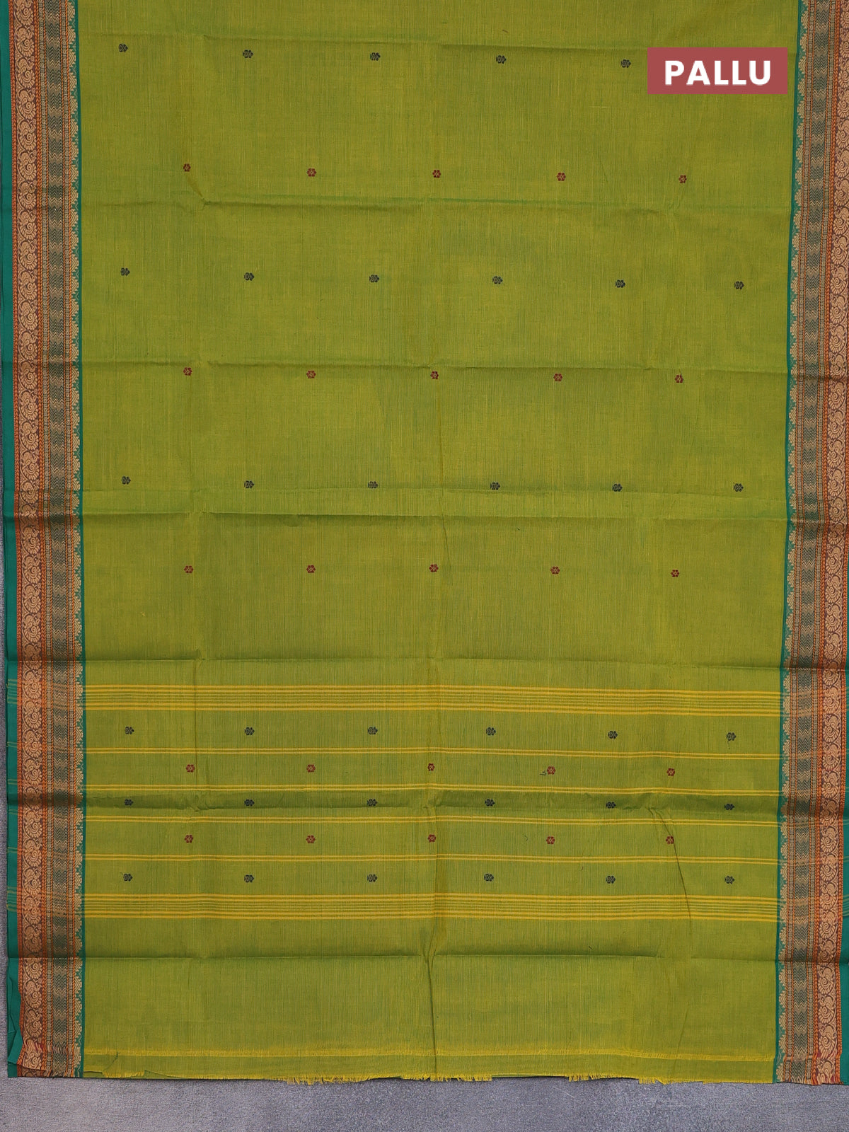 Chettinad cotton saree light green and green with thread woven buttas and thread woven border