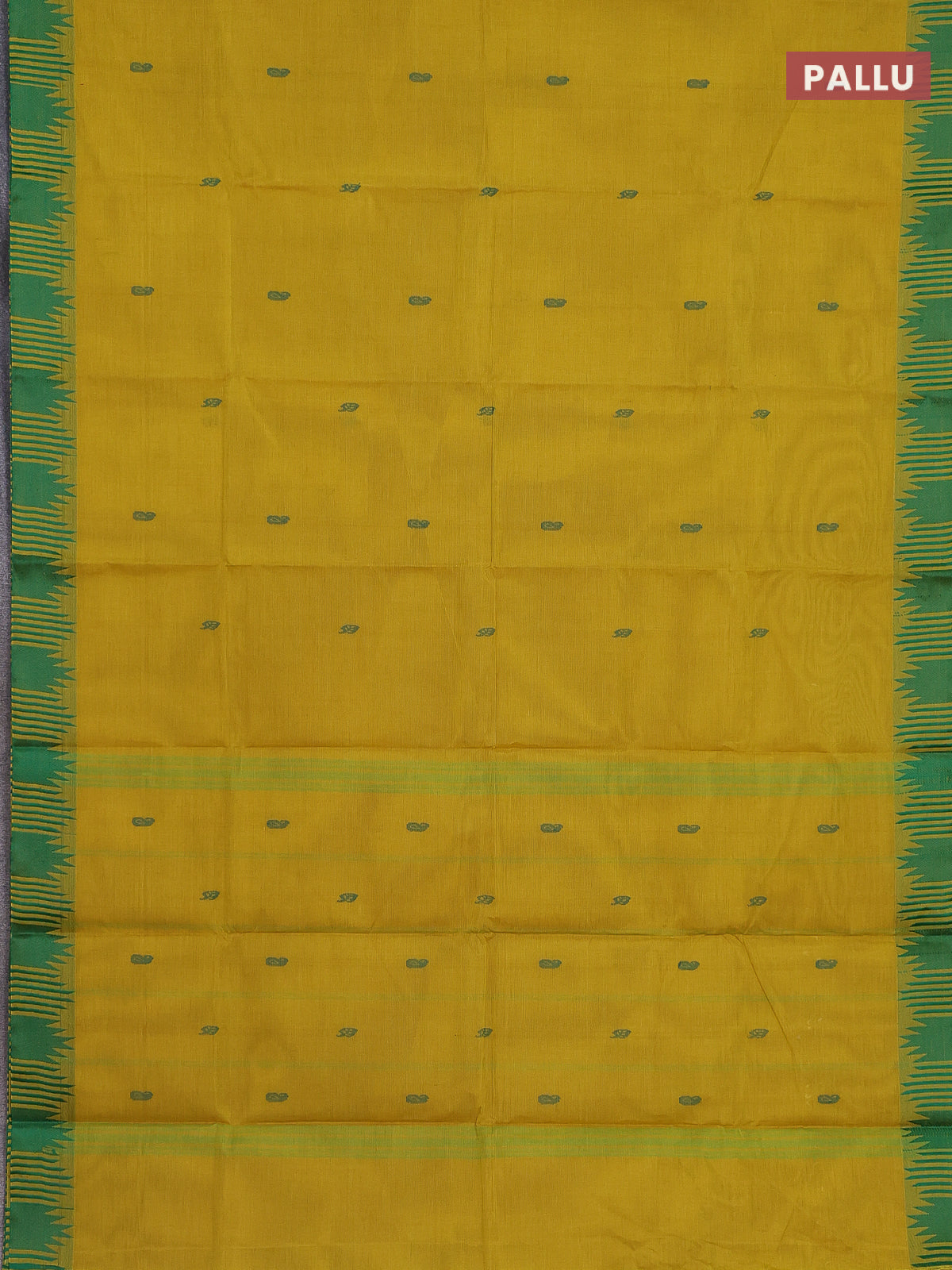 Chettinad cotton saree lime yellow and green with thread woven buttas and temple design thread woven border