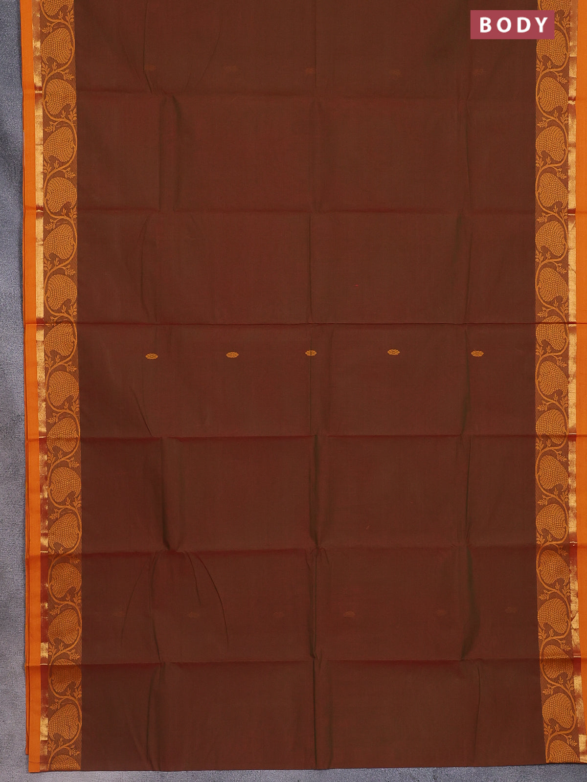 Chettinad cotton saree manthulir green and mango yellow with thread woven buttas and thread & zari woven border