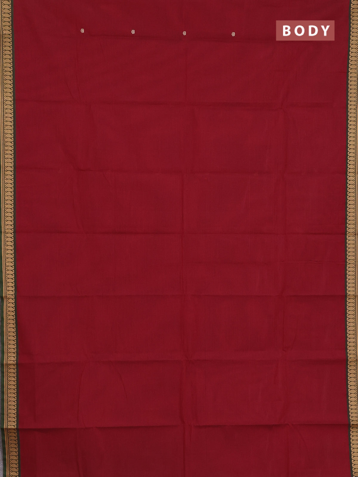 Chettinad cotton saree maroon and green with thread woven buttas and thread woven border