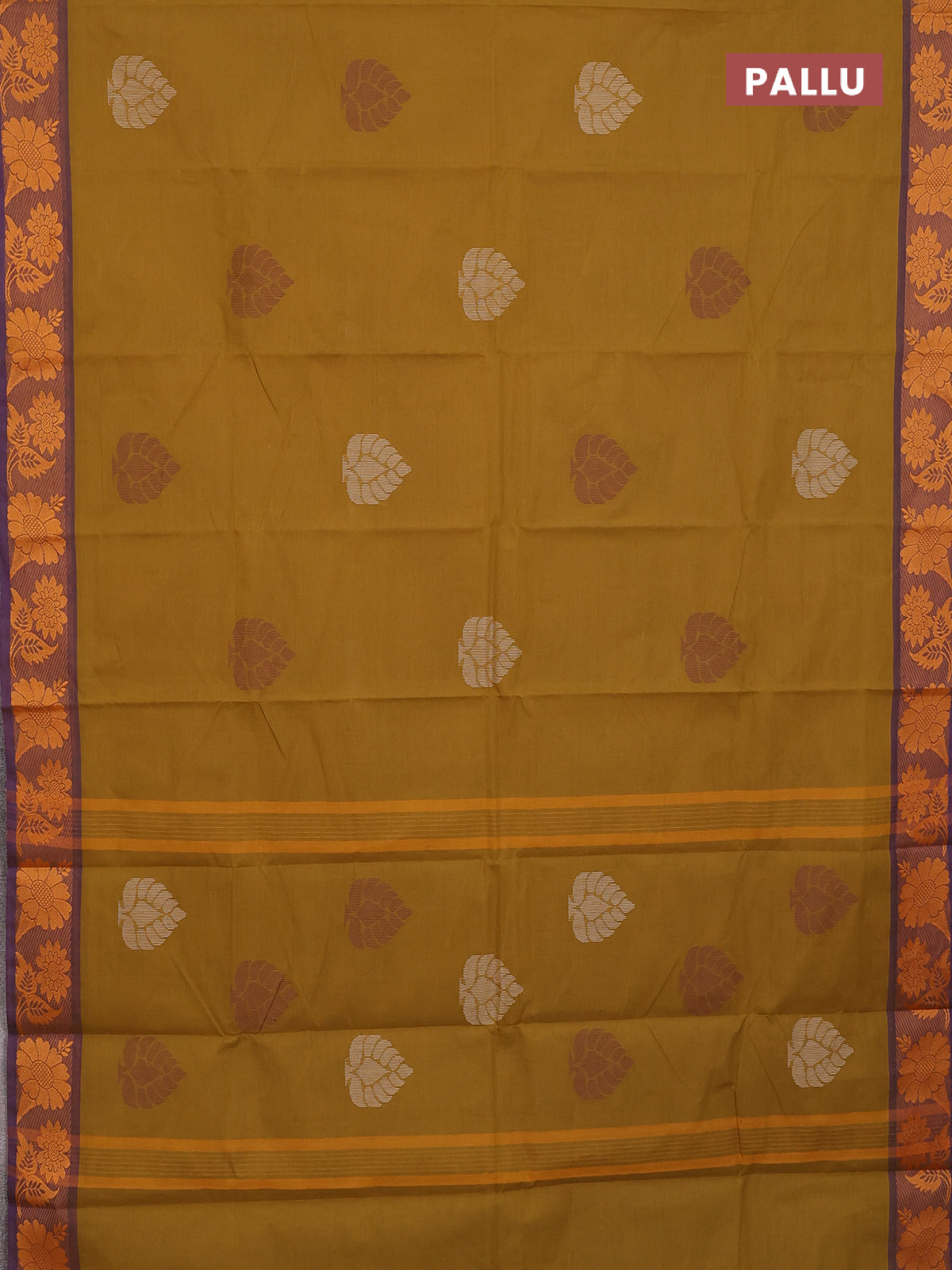 Chettinad cotton saree mehendi green and purple with thread woven buttas and thread woven border