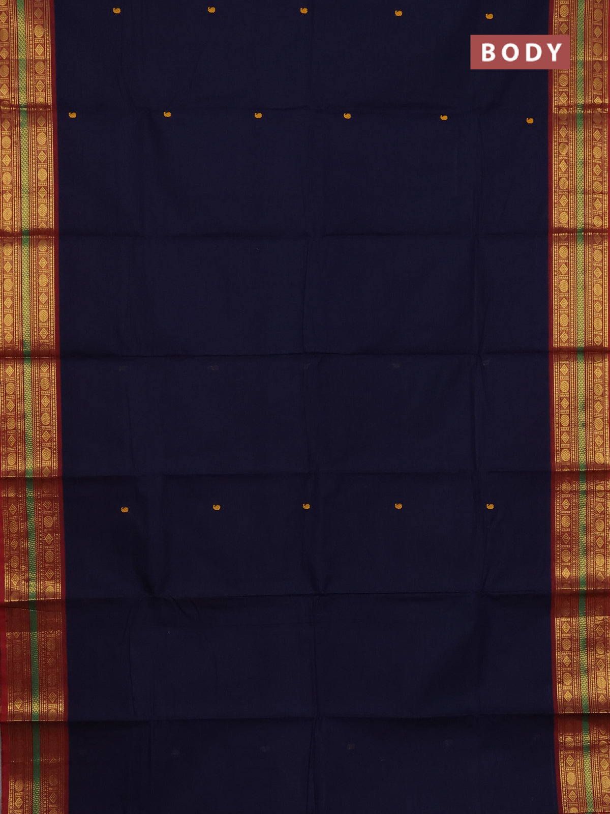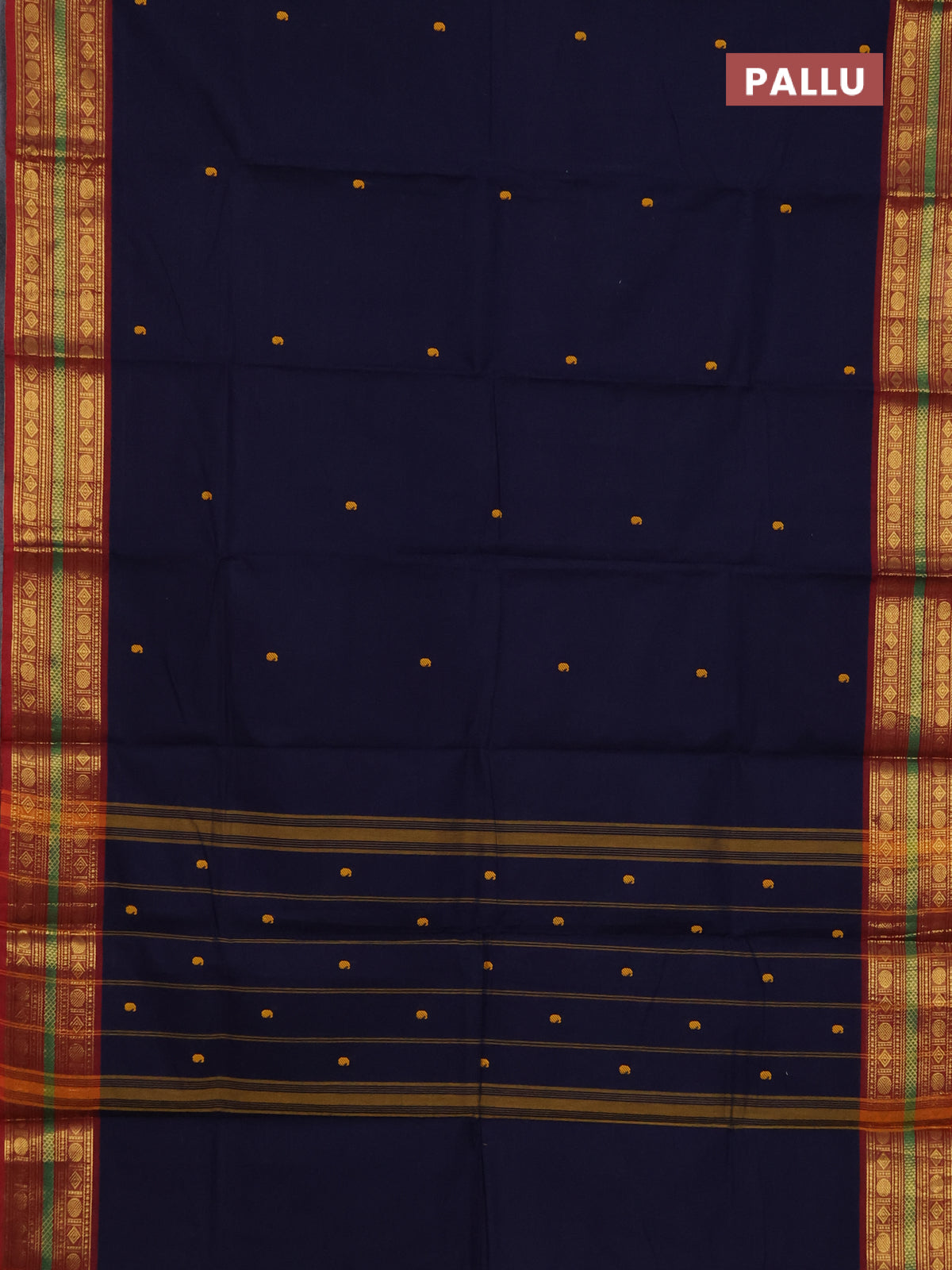 Chettinad cotton saree navy blue and maroon with thread woven buttas and zari woven border