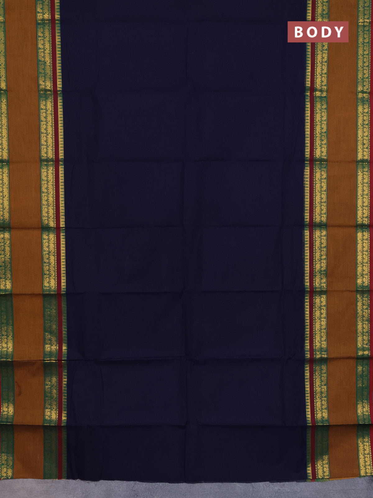 Chettinad cotton saree navy blue and mustard with thread woven buttas and rattapet zari woven border