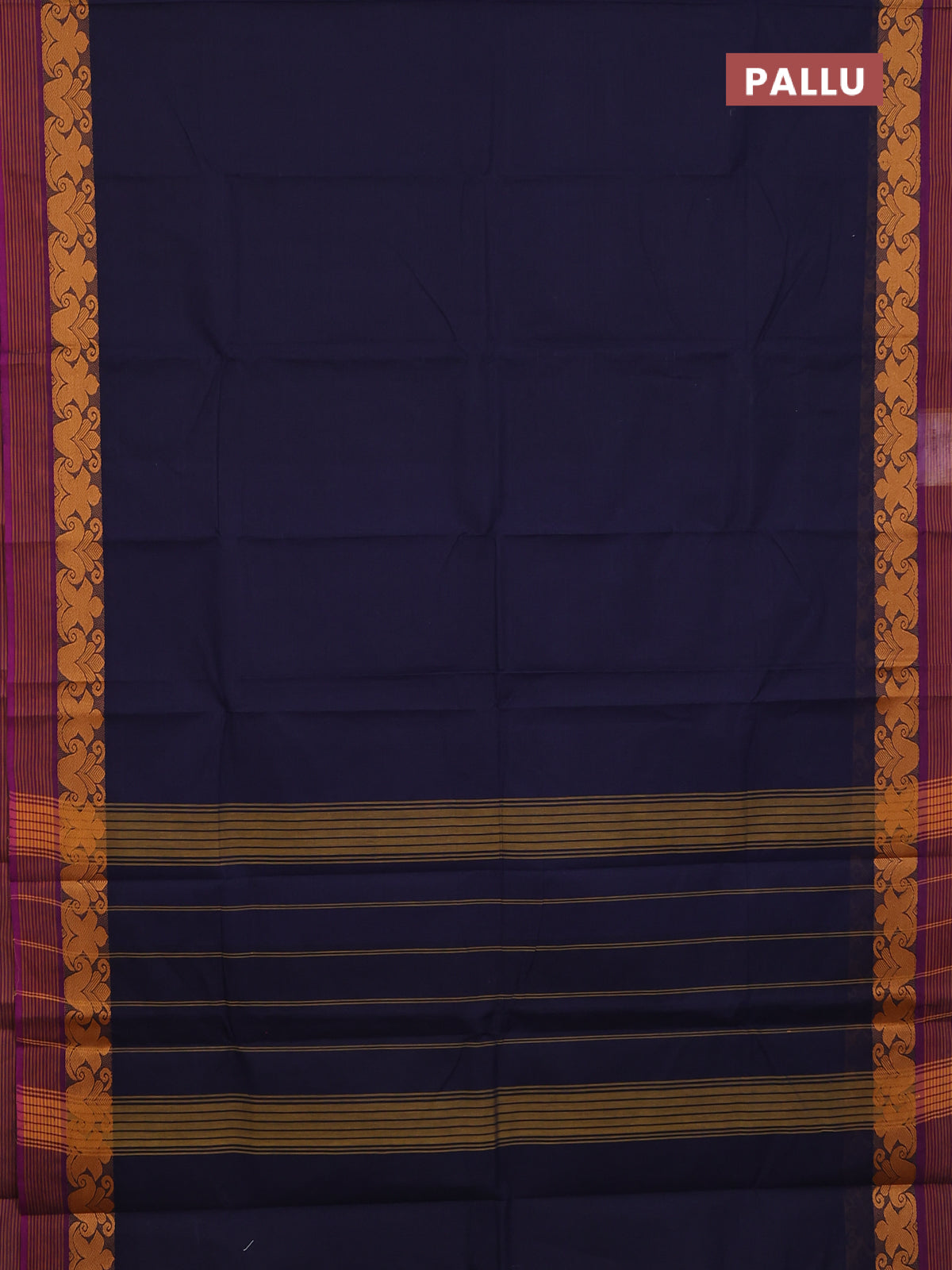 Chettinad cotton saree navy blue and violet with plain body and thread woven border