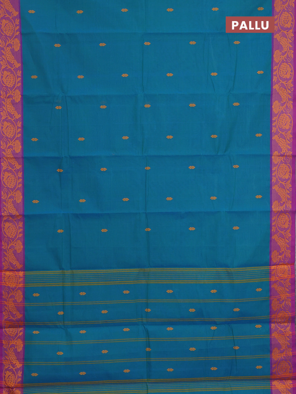 Chettinad cotton saree peacock blue and purple with thread woven buttas and thread woven border