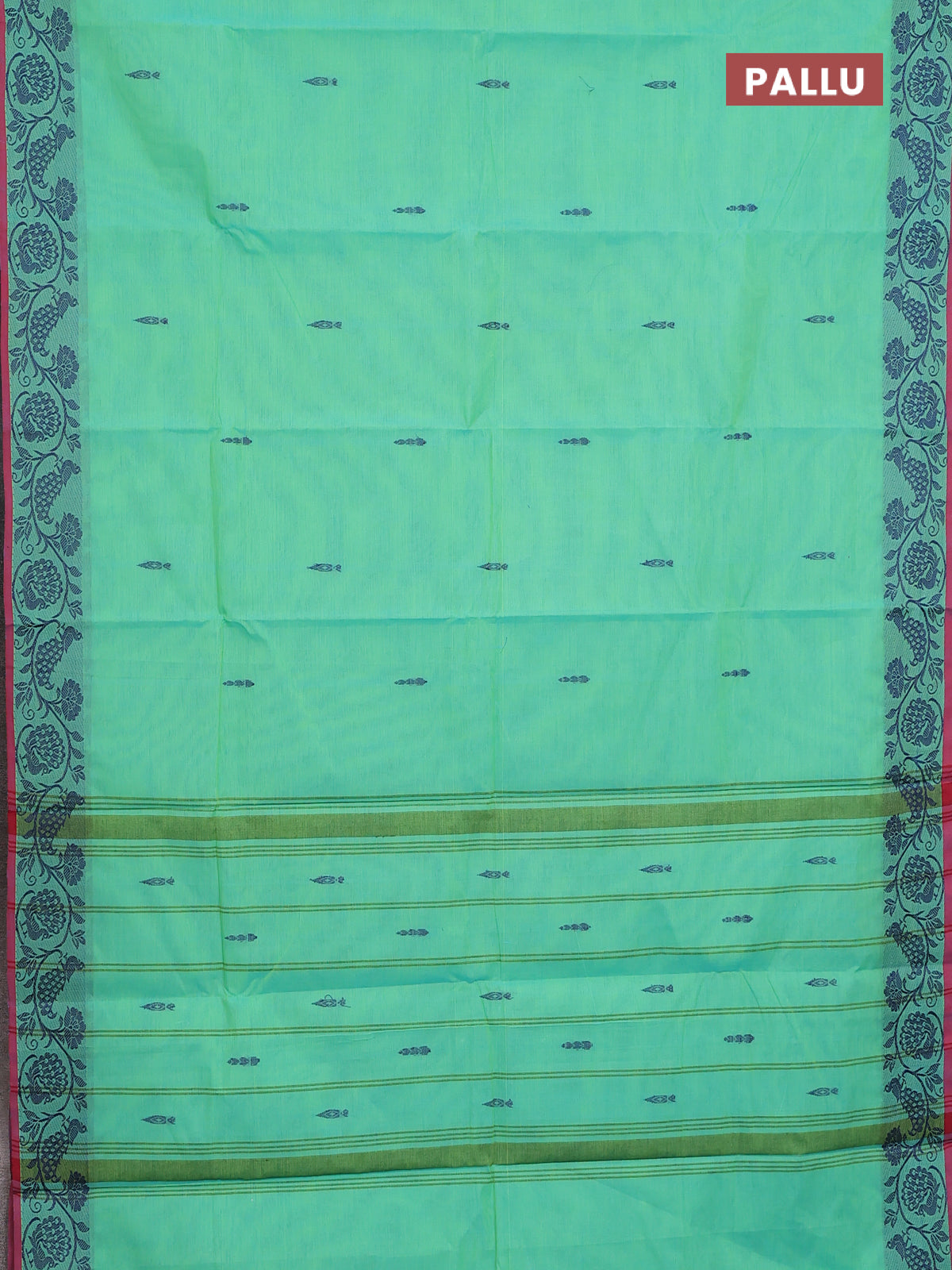 Chettinad cotton saree teal green and pink with thread woven buttas and thread woven border