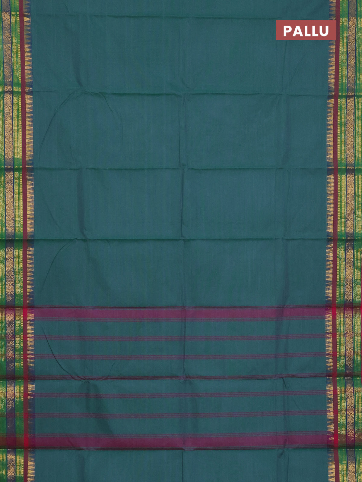 Chettinad cotton saree teal green and pink with thread woven buttas and zari woven border