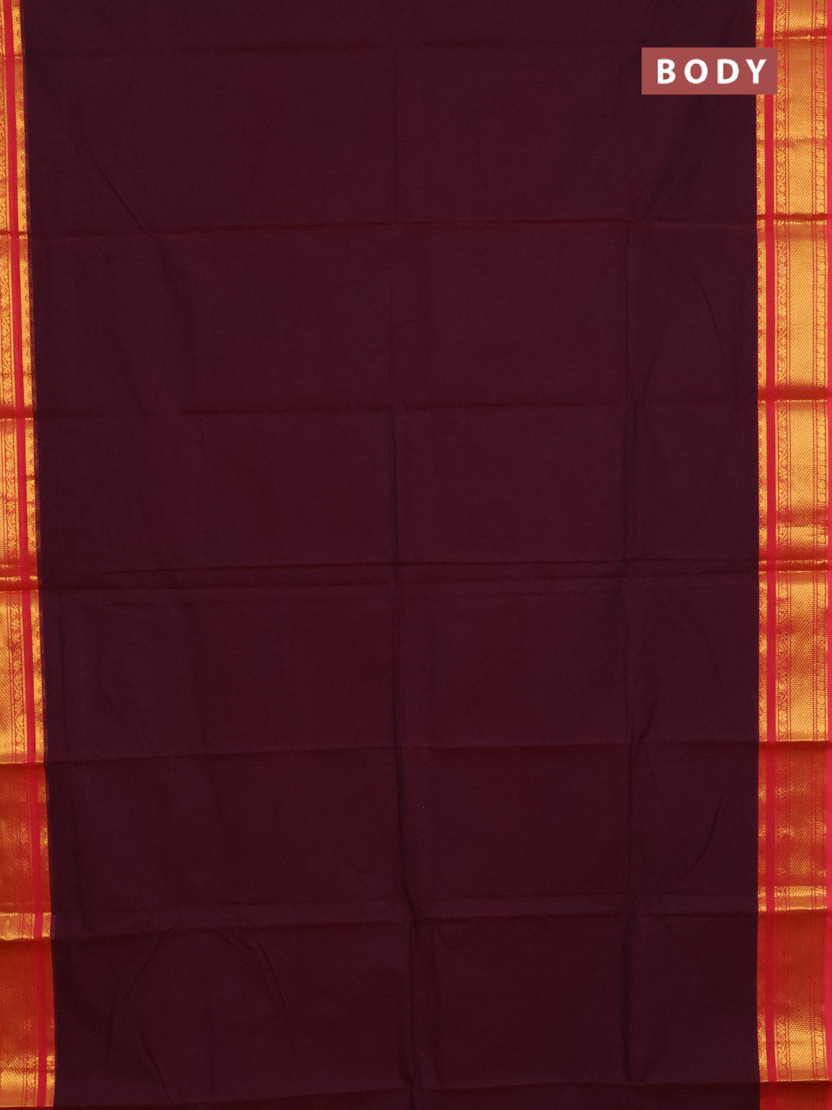 Chettinad cotton saree wine shade and peach pink with plain body and zari woven border
