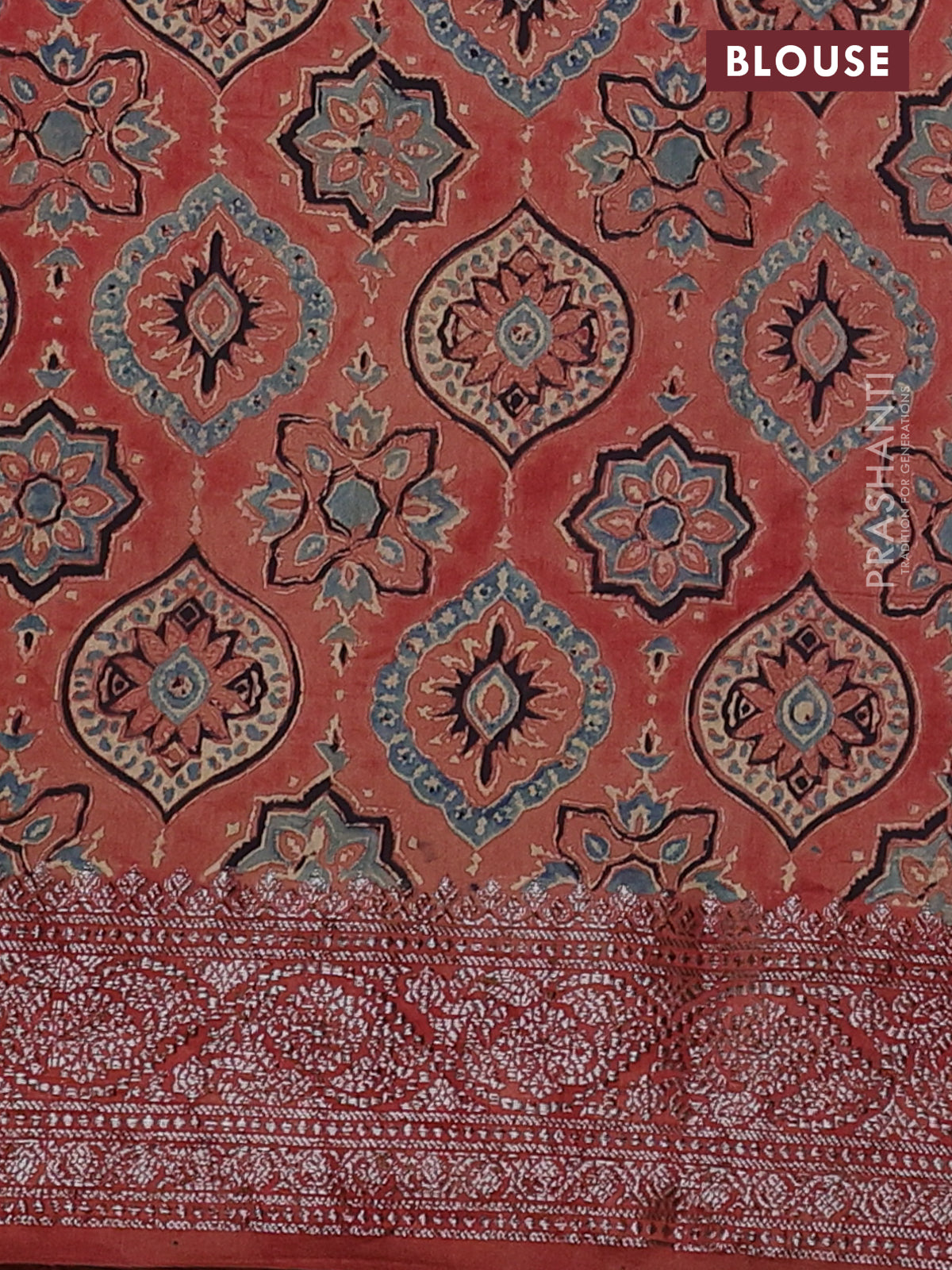 Chiniya silk saree dark green and rust shade with plain body and woven border