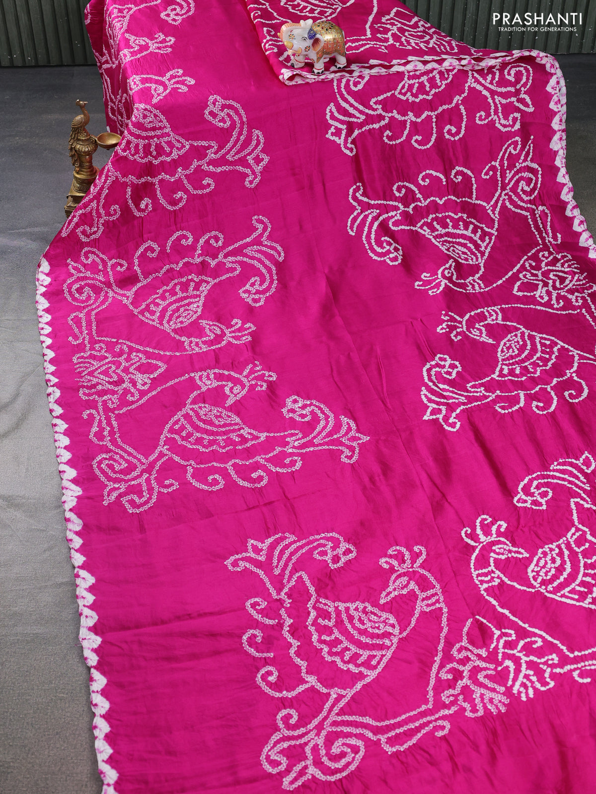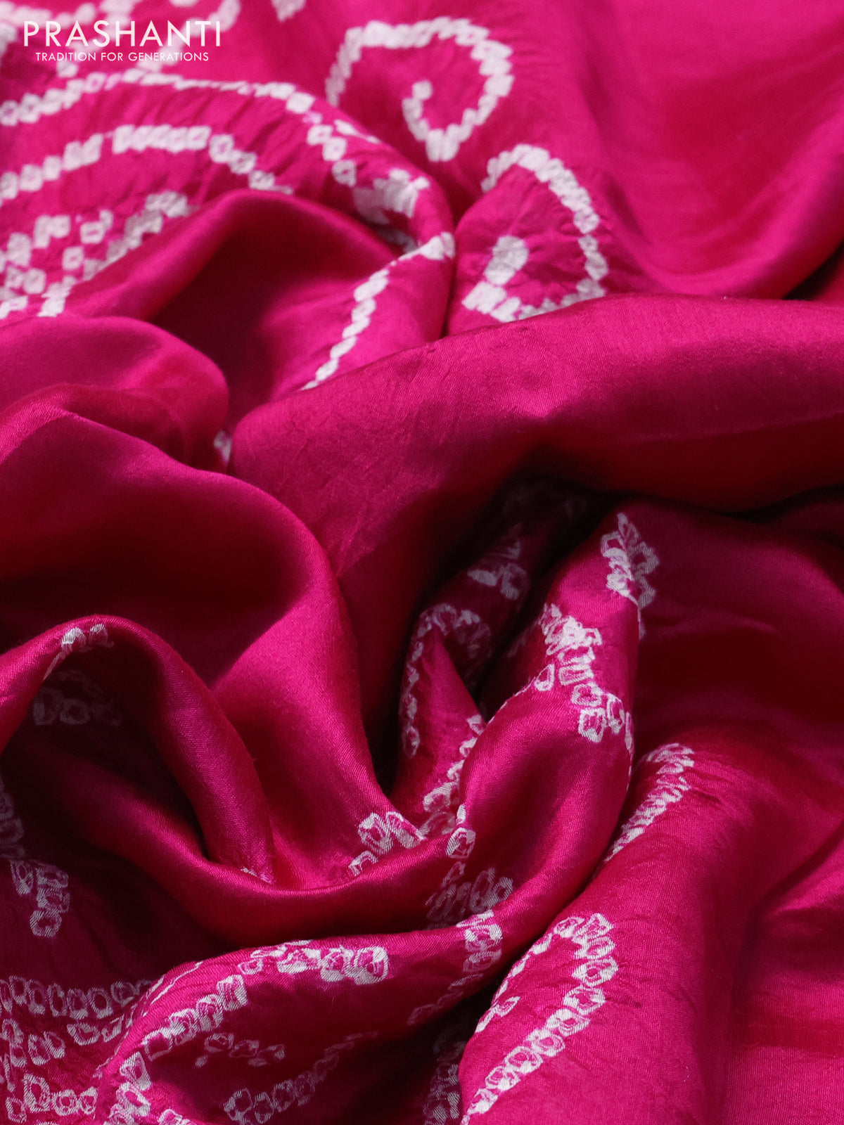 Chiniya silk saree magenta pink with allover bandhani prints
