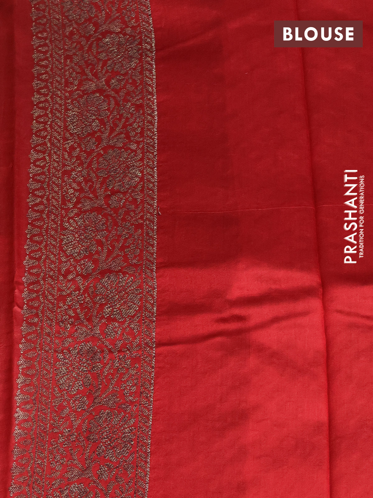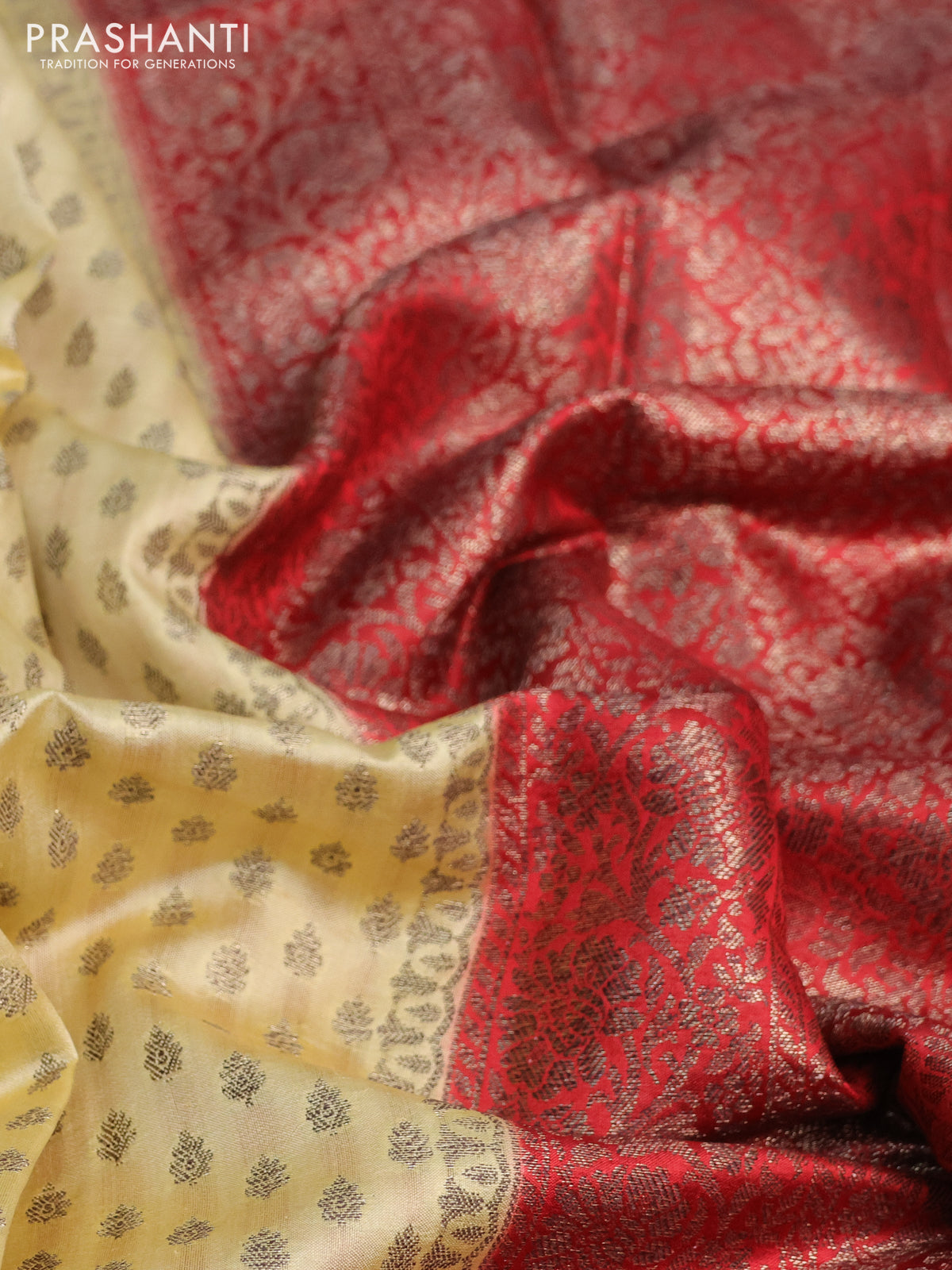 Chiniya silk saree pale yellow and red with allover thread & zari woven buttas and banarasi style border