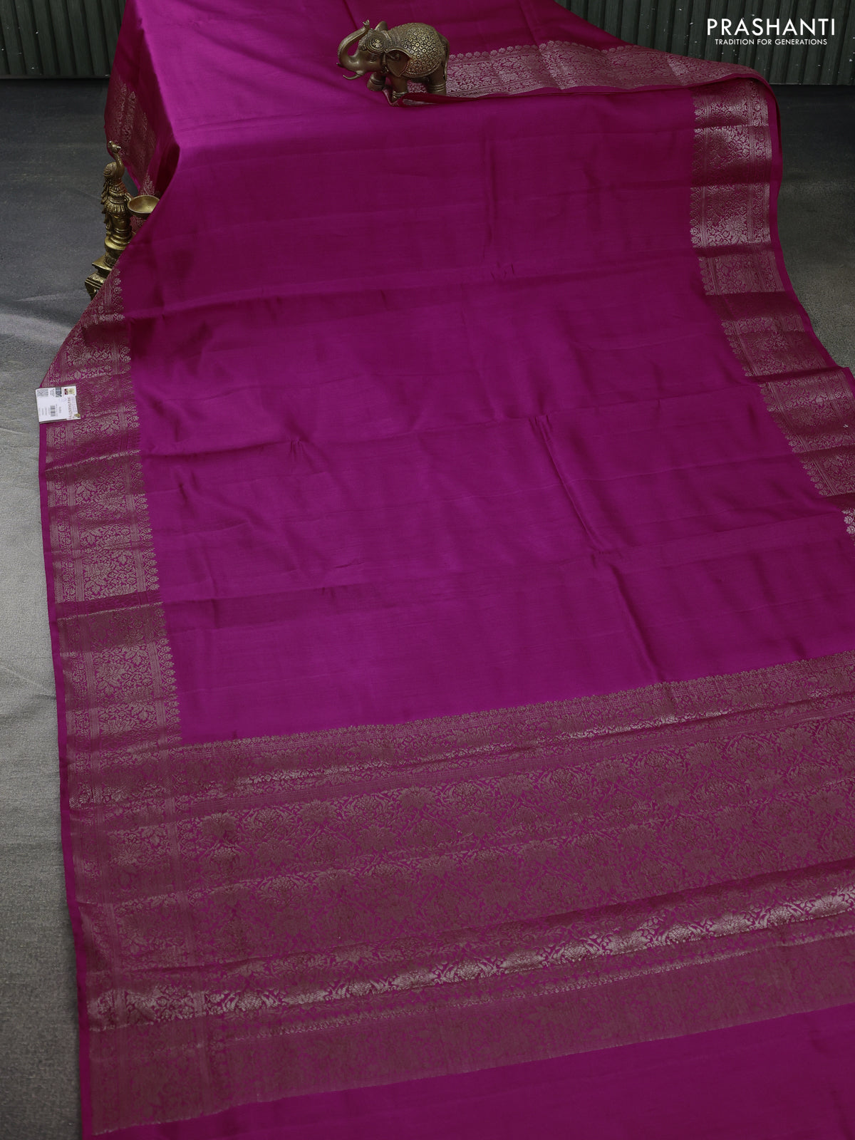 Chiniya silk saree pink and deep jamun with plain body and woven border