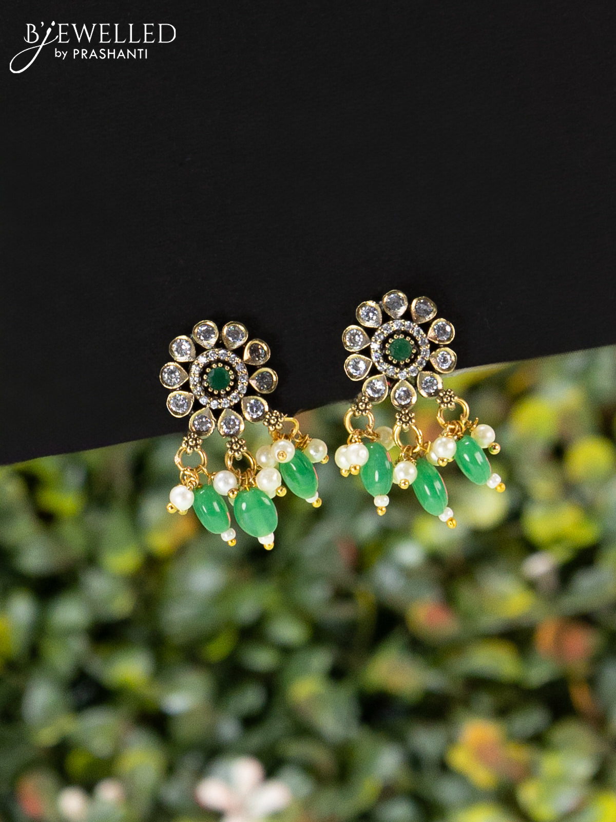 Choker peacock design with emerald & cz stones and pearl hangings in victorian finish