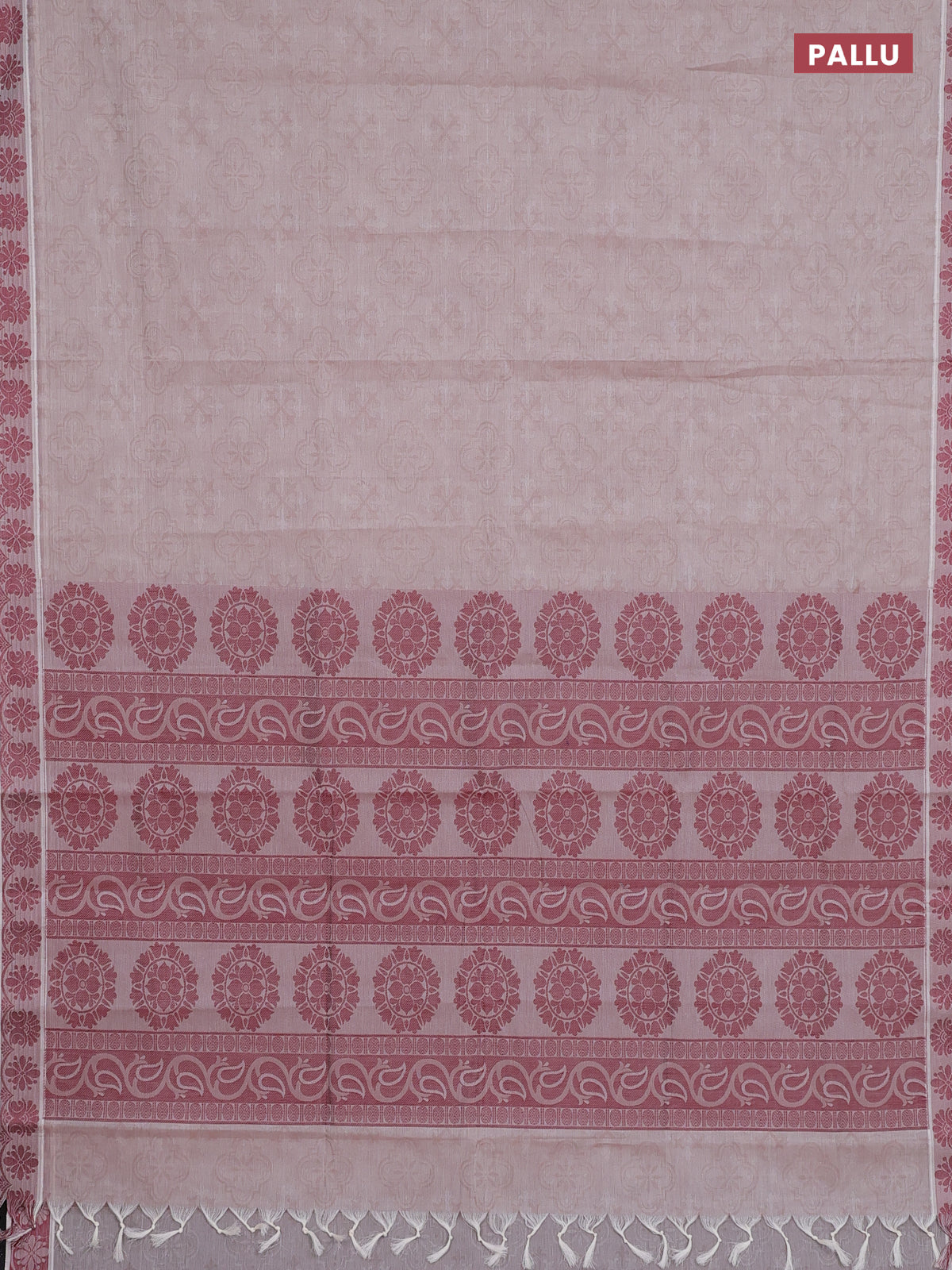 Coimbatore cotton saree beige and maroon with allover self emboss and thread woven border