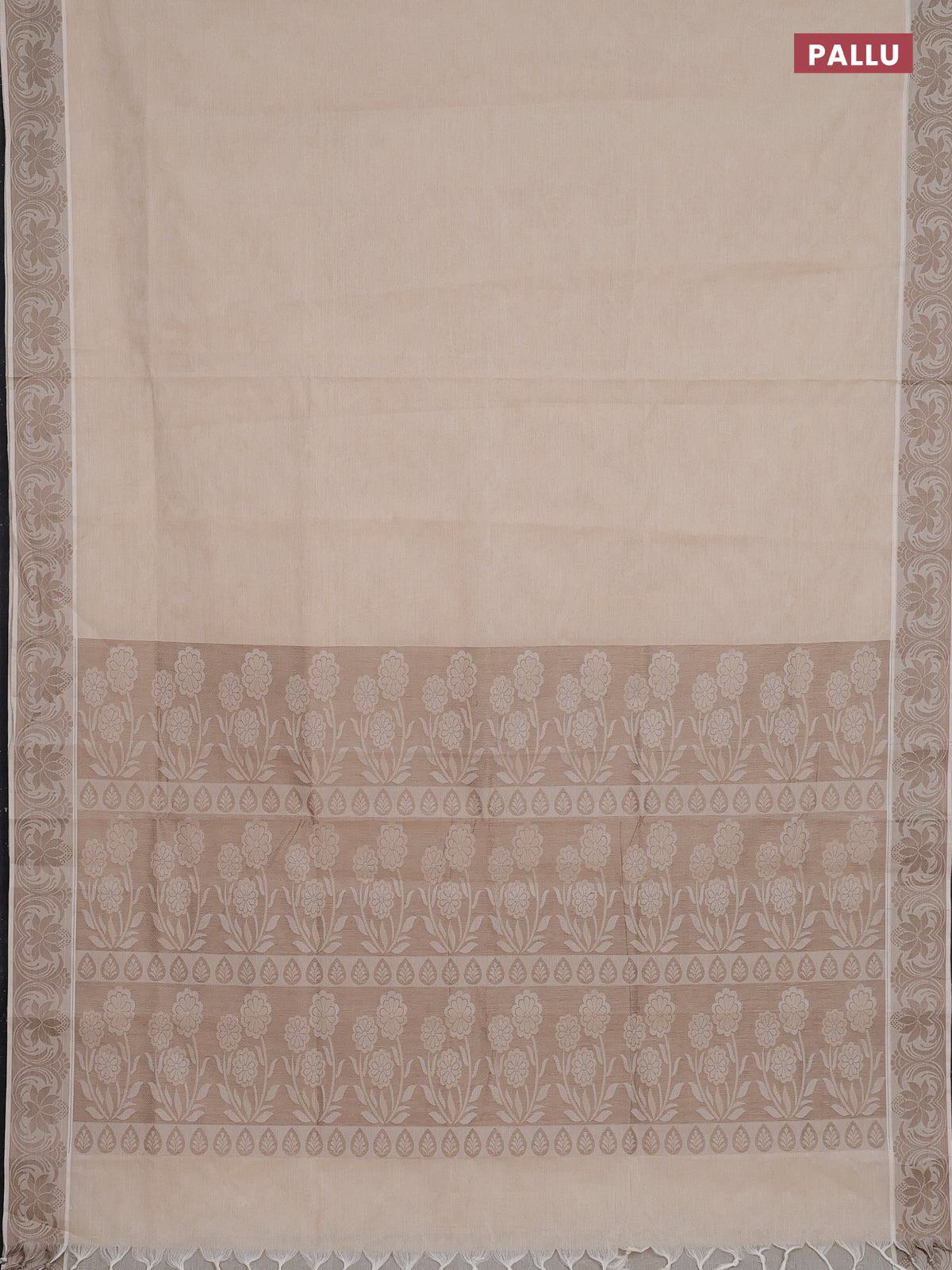 Coimbatore cotton saree cream and beige with allover self emboss and thread woven border