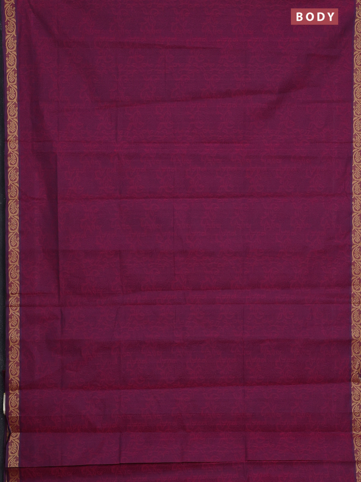 Coimbatore cotton saree dark magenta pink and sandal with allover self emboss and thread woven border