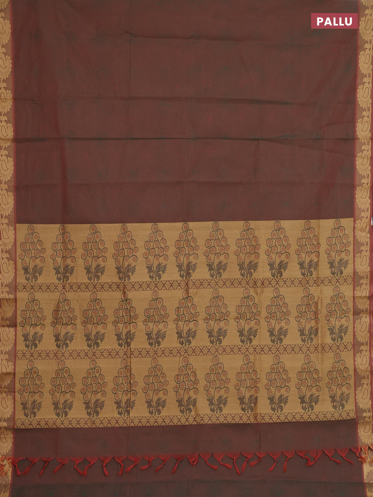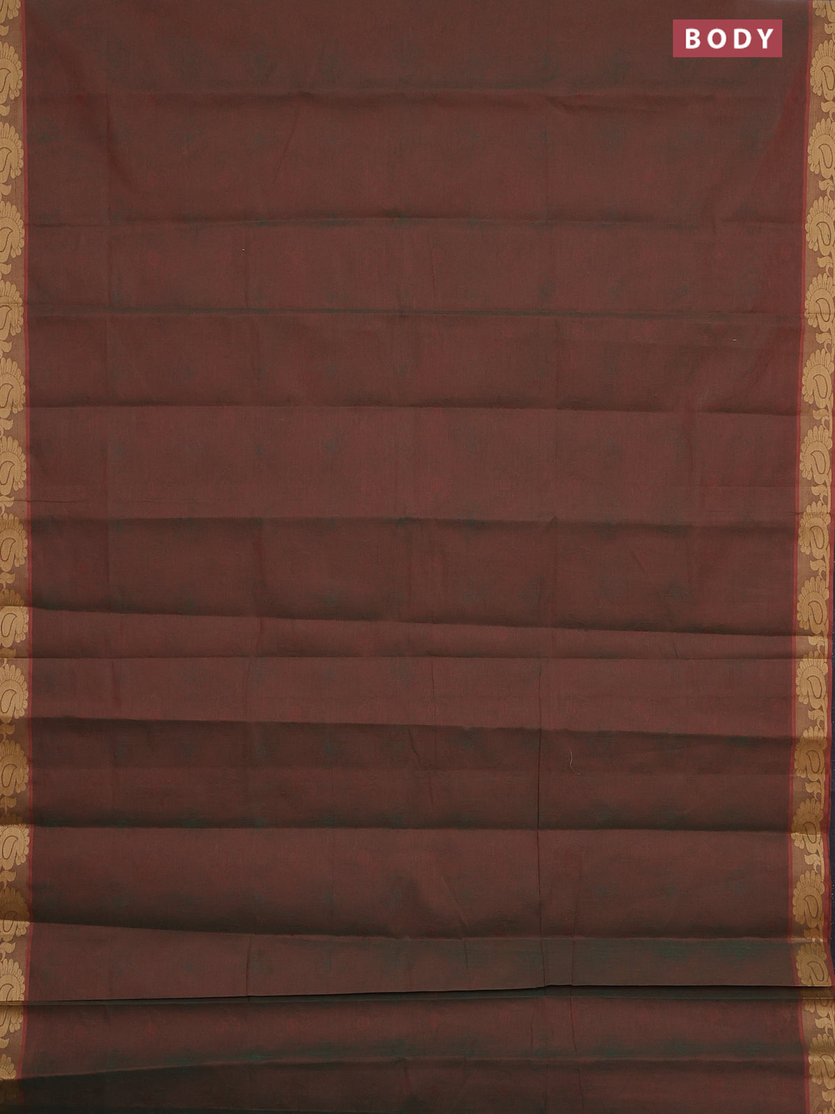 Coimbatore cotton saree dual shade of greenish maroon with allover self emboss and thread woven border