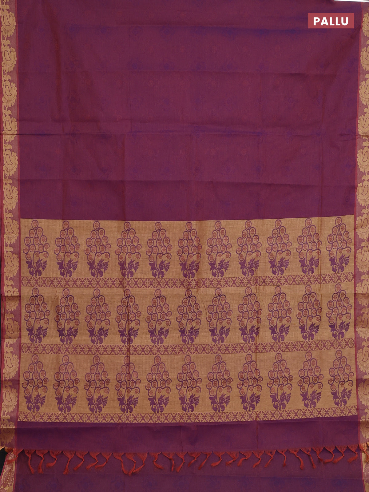 Coimbatore cotton saree dual shade of purple with allover self emboss and thread woven border
