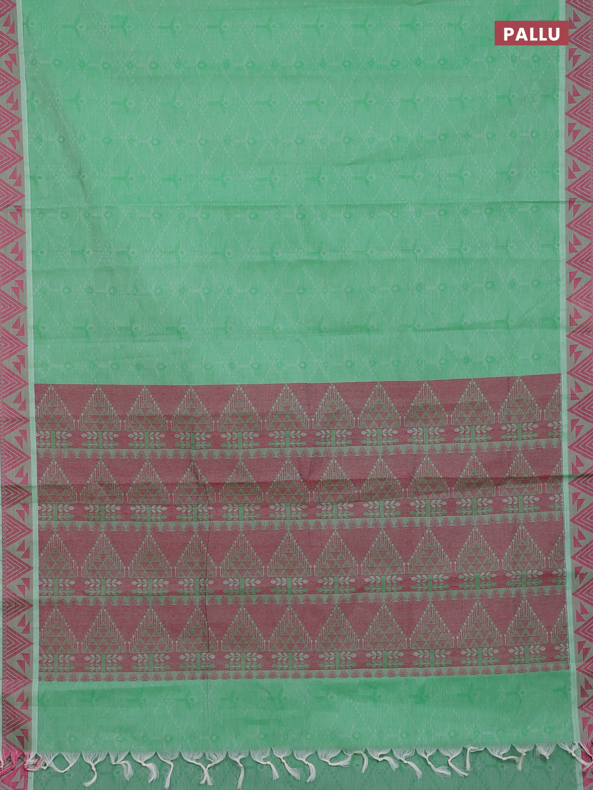 Coimbatore cotton saree green and pink with allover self emboss and thread woven border