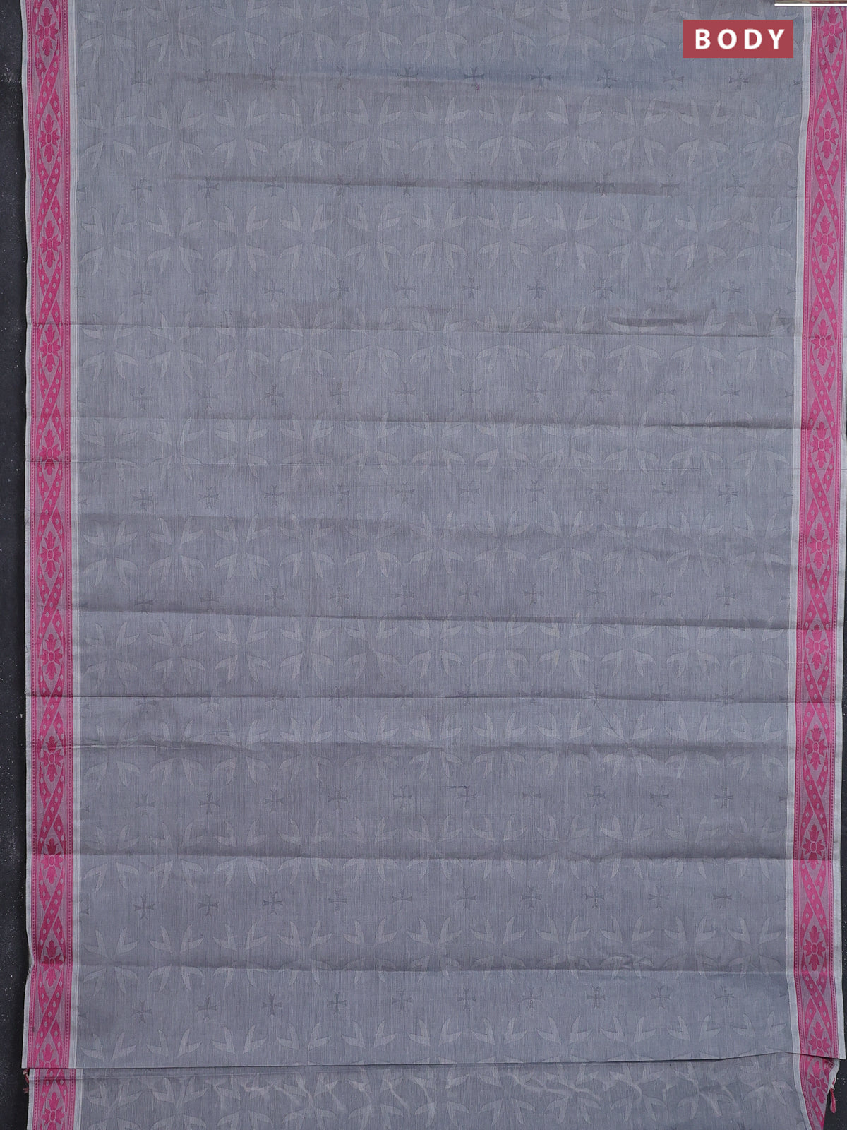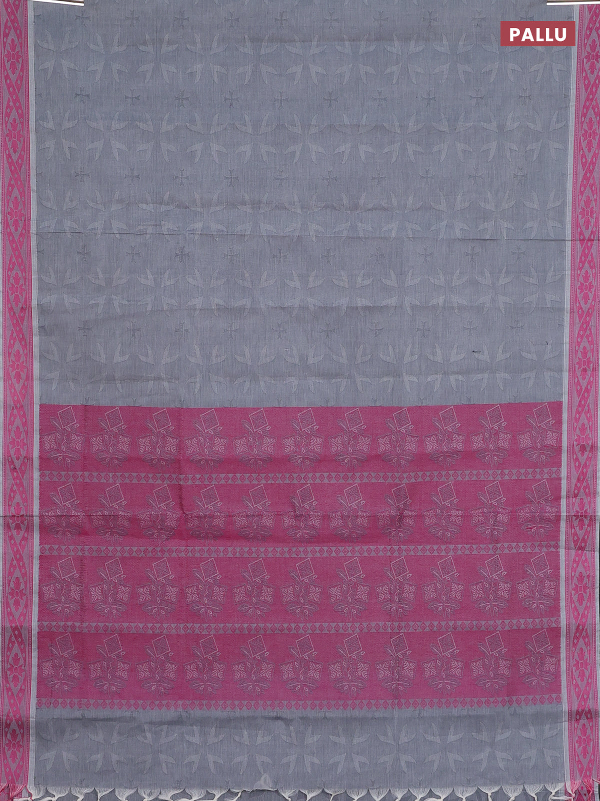 Coimbatore cotton saree grey and pink with allover self emboss and thread woven border