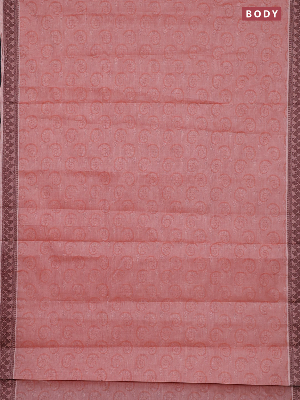 Coimbatore cotton saree rust shade and coffee brown with allover self emboss and thread woven border