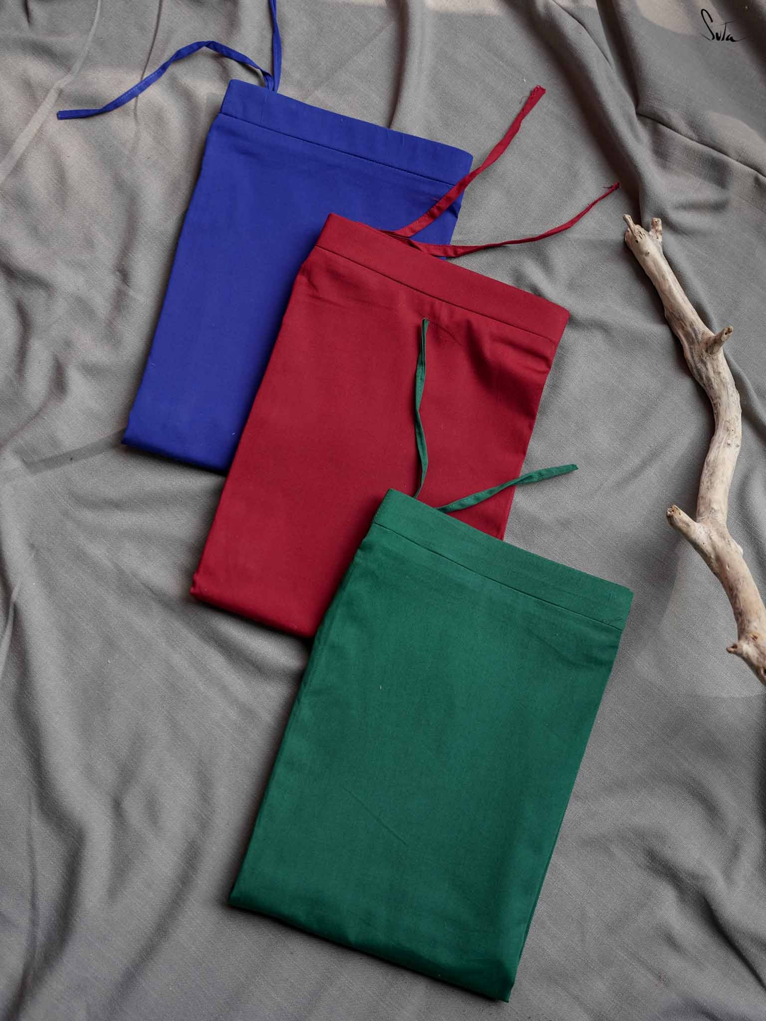 This combo includes 3 cotton-lycra underskirts in Cobalt, Emerald, and Maroon. The cool blue, fresh green, and deep red create a wave of beautiful, bold colors. Perfect for anyone who loves strong, striking tones.