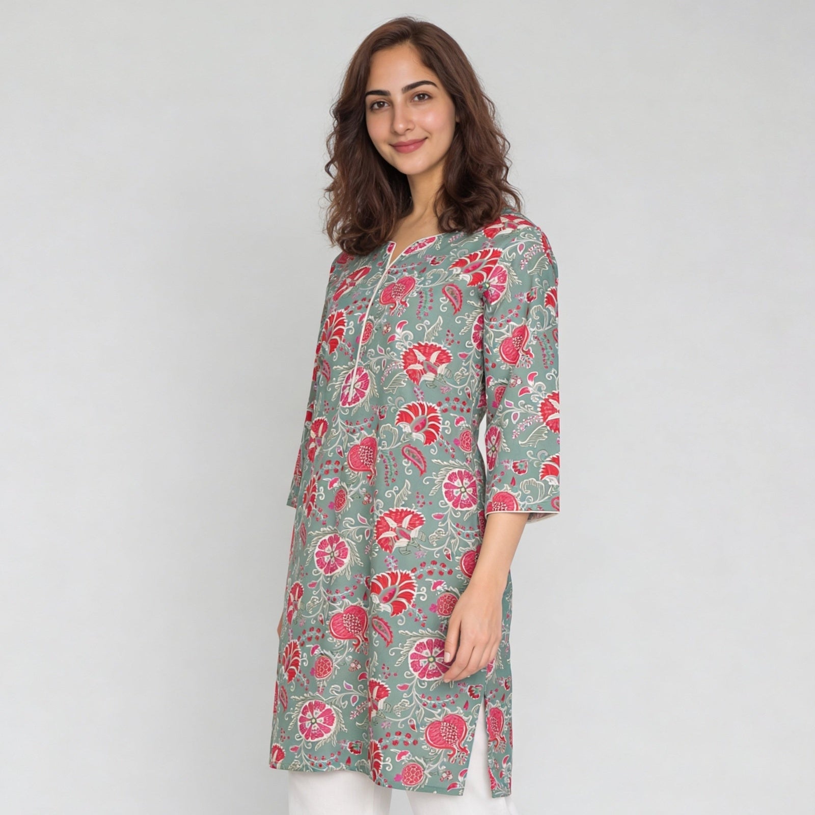 The Cotton Printed Straight Kurta is a stunning addition to any wardrobe, crafted from high-quality cotton that promises all-day comfort. Its woven fabric showcases a beautiful printed pattern, making it a stylish choice for various occasions.