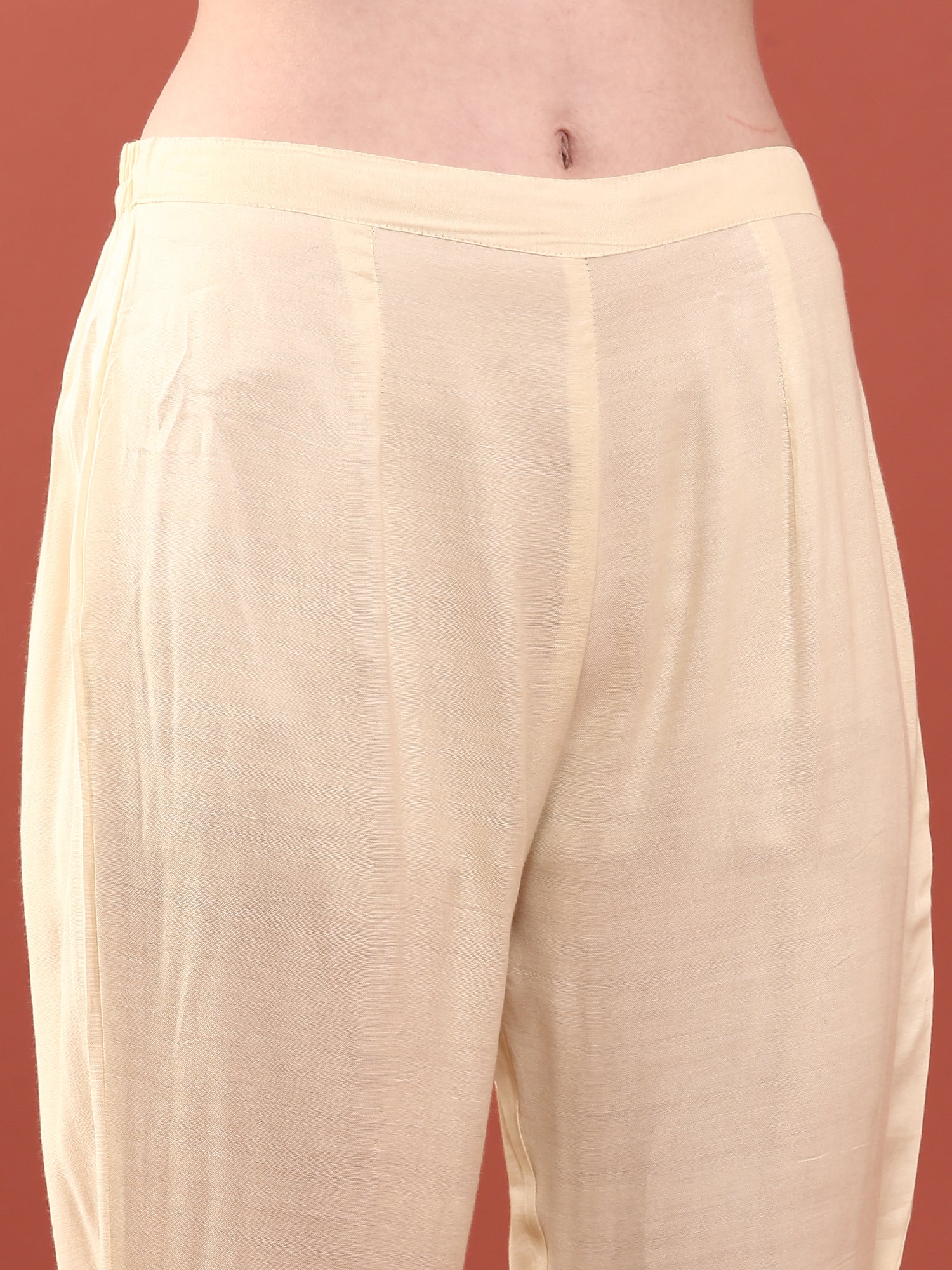 Elevate your wardrobe with this sophisticated three-piece ensemble crafted from premium cream muslin. The digital print detailing adds contemporary flair to the timeless appeal of muslin fabric, known for its breathability and comfort. This versatile set seamlessly transitions from casual daywear to semi-formal occasions, making it an essential addition to your collection.