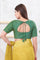 The dark green silk printed blouse with mid length sleeves and scoop neck for an amazing look.