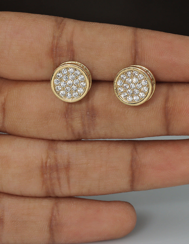 Chic and timeless, these round gold-tone studs are encrusted with shimmering crystals—perfect for everyday elegance or subtle sparkle at special events.