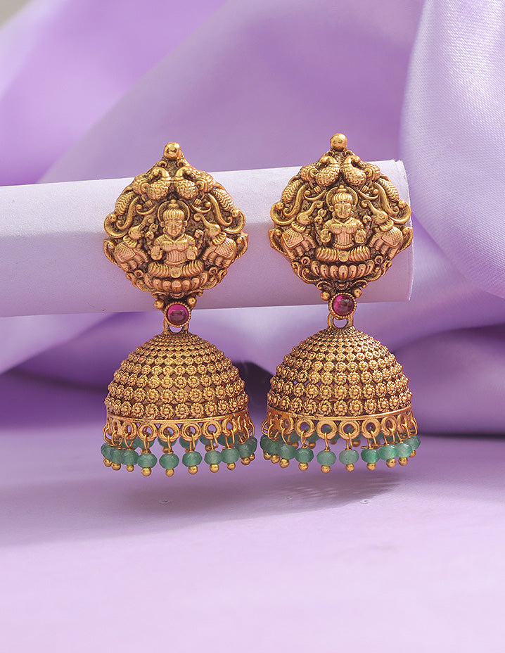 The Designer Lakshmi Devi Necklace Set features expertly crafted ruby, emerald, and Kempy stones, embodying timeless elegance. Perfect for festive occasions, this set enhances any traditional ensemble with its vibrant and refined design.