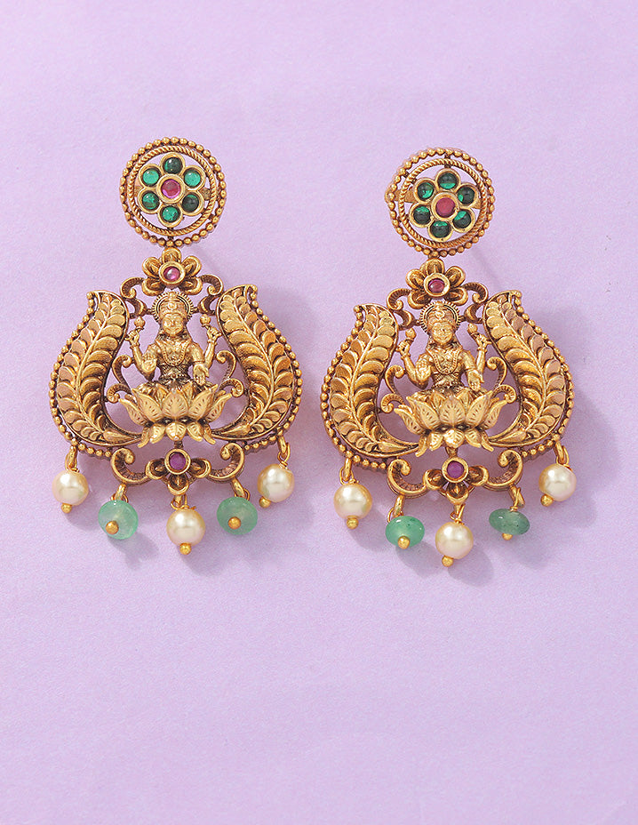 Elevate your traditional look with the Designer Matt Kempu Long Haaram Set, featuring intricate craftsmanship and vibrant red accents. The set includes matching Lakshmi Devi earrings, perfectly complementing the elegant haaram for a timeless appeal.