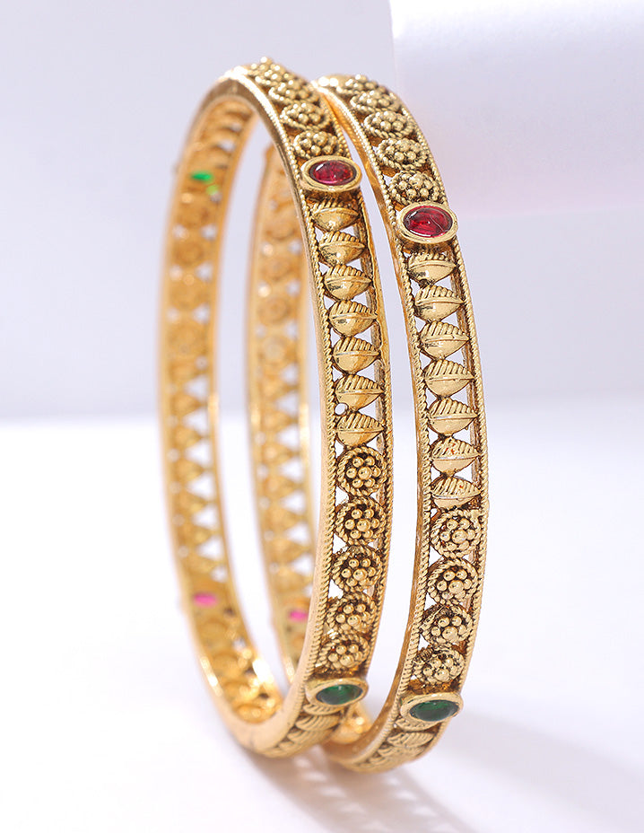 Premium matt-plated bangles with Ruby & Green Kempu stones. A perfect mix of tradition and style for any occasion!