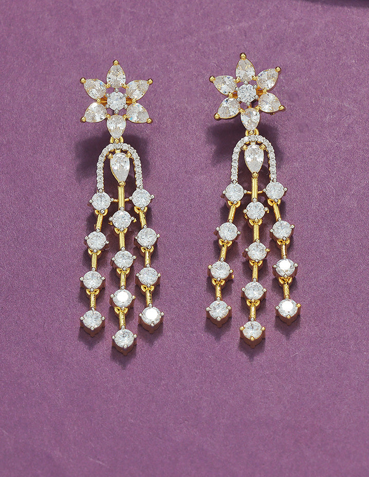 A radiant GJ-toned necklace and earring set adorned with sparkling Bud and floral motifs, perfectly blending elegance and charm for your special occasions.