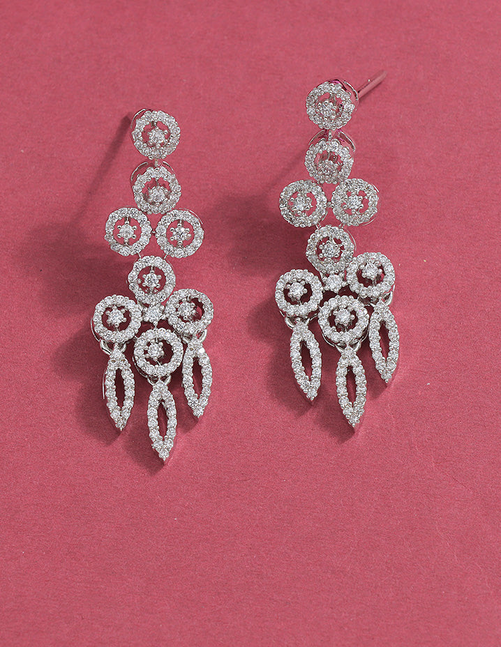 This Designer Zirconia Elegance Necklace Set features two lines of shimmering white zirconia stones, expertly set in rhodium-plated metal for a radiant, lasting shine. Its refined design offers a sophisticated touch to any ensemble, enhancing your elegance for special occasions or daily wear.