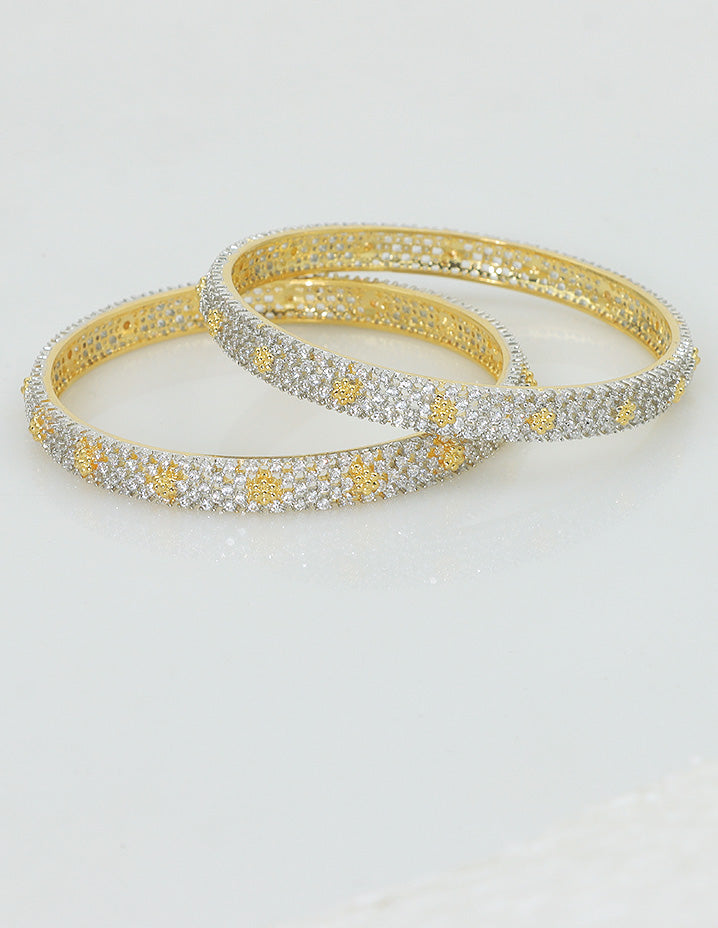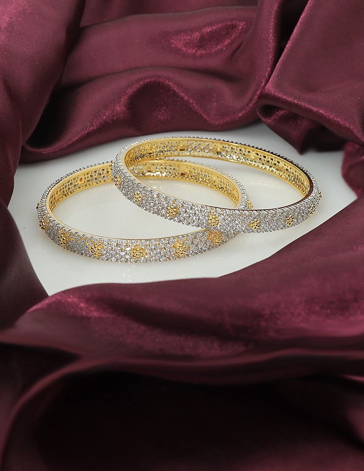 Elevate your look with this Designer Zirconia Bangle. Available in various sizes, this bangle features zirconia stones in White. A must-have for any jewelry collection.