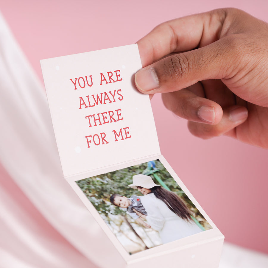 Becoming a mom changes everything - this hamper captures those first beautiful moments. Right on top of the hamper, a dialogue box pops open with 3 sweet messages and 3 photos to make her smile (and maybe cry a little too). A thoughtful start for a surprise made just for new moms.