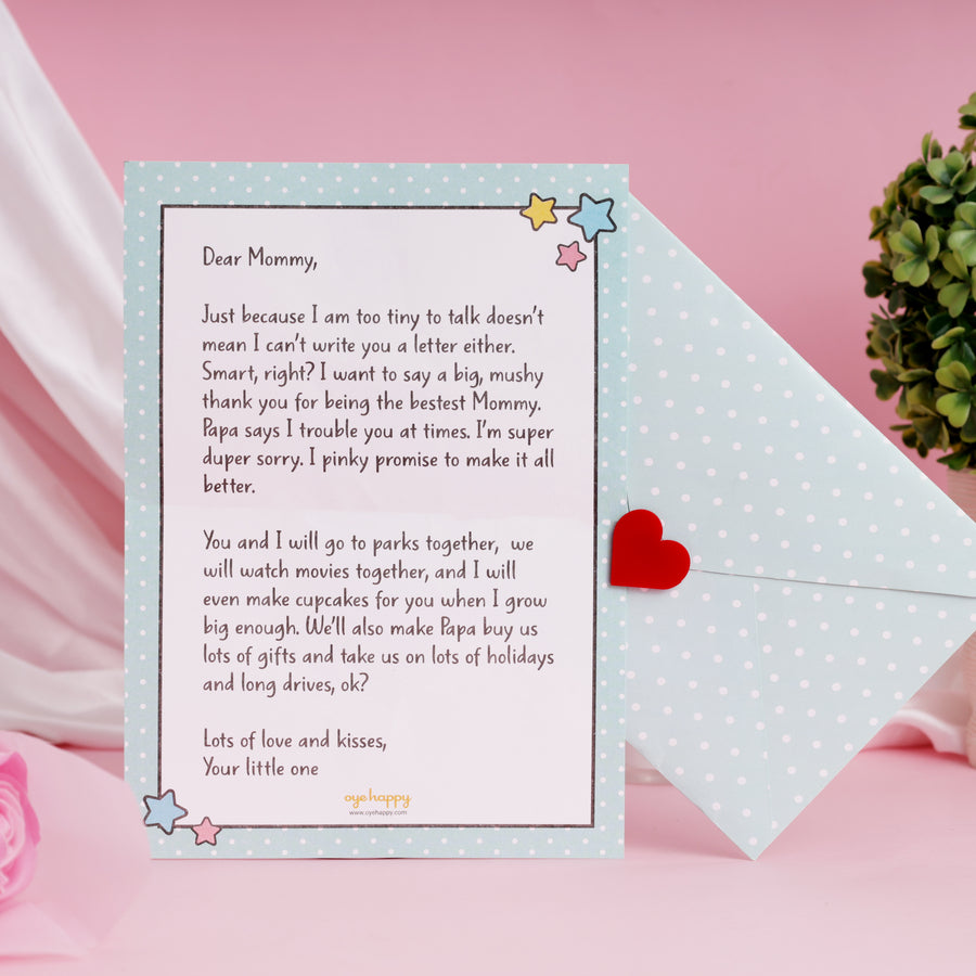 Letter from the Baby - Imagine the look on her face when she reads a letter from her own baby! Approved by new mothers, the letter has been crafted to make her smile, cry and melt like a slab of butter.