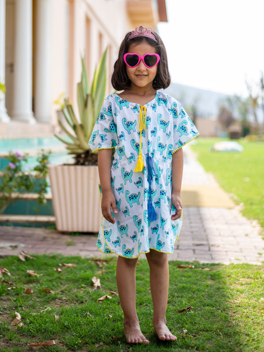 Dino Organic Cotton Block Printed Kaftan for Kids