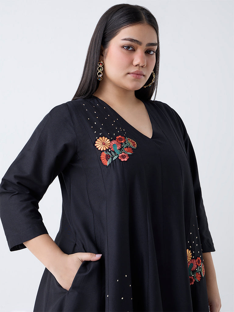 Diza Black Floral Embroidered Anarkali Kurta