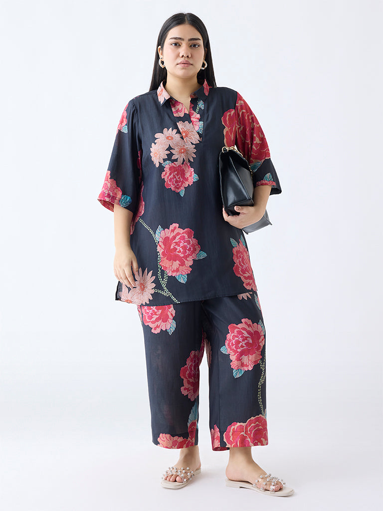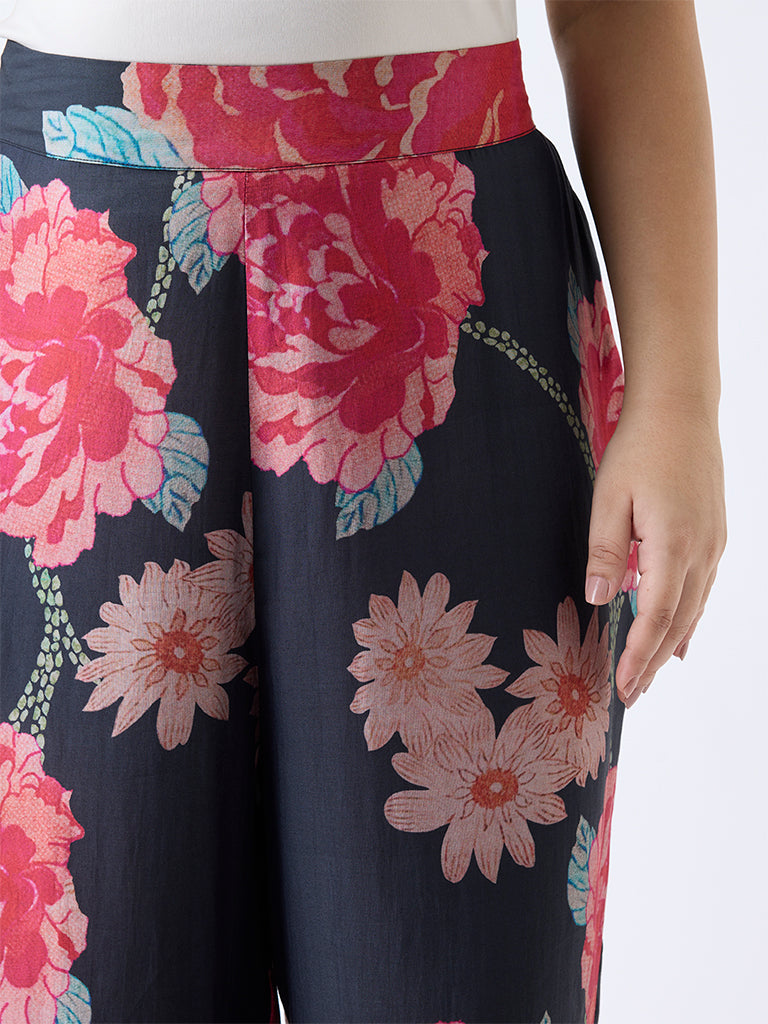 Diza Black Floral Pattern Pants